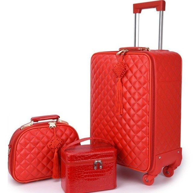 Red Suitcase Wedding Trolley Case Woman Luggage Bride Dowry Box Classic Travel Suitcase Set Spinner