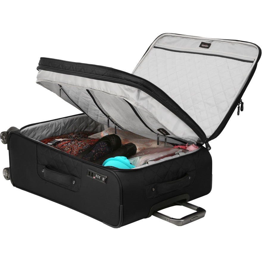 Fashion meets practicality with the Ricardo Beverly Hills Carmel Collection. From accessory tote bags to carry on spinners and larger uprights, the Carmel collection has a bag for every need. The high fashion totes and carry on WheelAboards feature and RFID protection pocket to keep your identity protected and built in TSA combination locks on all upright spinners for additional security.