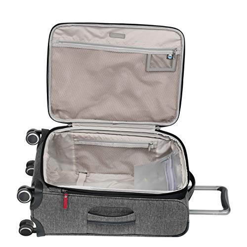- Custom 360 spinner-wheel system glides smoothly and stably for minimal effort on the go. The case expands with the pull of a zipper for increased packing capacity.