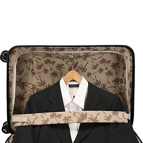 - Effortlessly push your spinner upright with the curved handle that fits the natural contour of your hand. Fully zippered panel includes a suiter loop and padded bar to prevent wrinkles