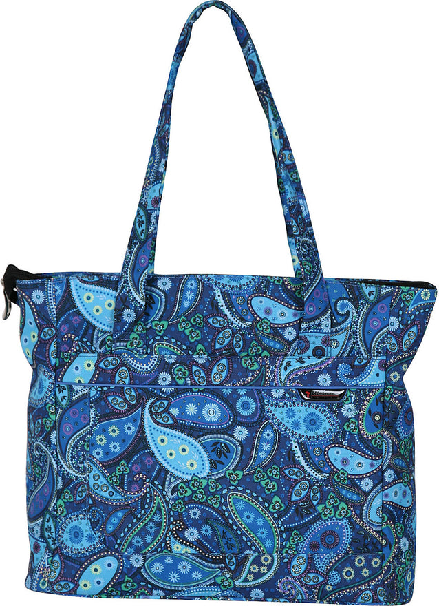 - Zippered piggy-back pocket lets you slide your tote over any standard handle system for easier transport.