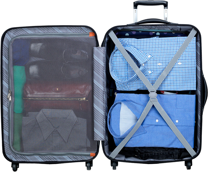 - Mesh divider on the 24 and 28 inch cases provides see-through organization.