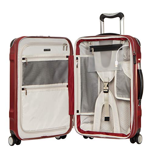 Details: This attractive domestic carry-on is ideal for travels anywhere in the world and features tech-charging capability, so you're always powered up. Designed for modern explorers with a taste for refined craftsmanship and engineered with a nearly indestructible Makrolon by Covestro polycarbonate exterior - the highest grade in the market, this exceptional suitcase also offers smooth, ergonomic handling, a well-organized interior, and TSA-lock security-perfect for business, pleasure, and compliments on your good taste.