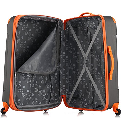 Details: This 3 pc. Set is made of abs. The major benefits of this material - it is extremely lightweight, it is durable, and protects the contents of your luggage. Eight multi directional spinner wheels rotate 360 degrees for easy maneuverability. This luggage allows you to pack more while avoiding the excess weight surcharges imposed by most airlines. Features: expandable, multi-directional spinner wheels for easy maneuverability, modern internal chrome telescoping handle with push button handle, and interior mesh and zip pocket and elastic pocket. Measures: 20 inchx13 inchx9 inch weighs 6 lbs., 24 inch x15 inchx10 inch weights 8 lbs., 28 inchx17 inchx12 inch weighs 10 lbs.
