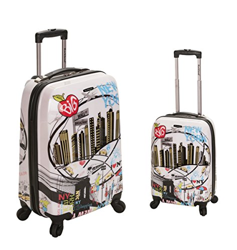 Details: This 2 piece set is made of polycarbonate,abs. Polycarbonate is the same material used to manufacturer bullet proof glass. The major benefits of this material - it is extremely lightweight, it is durable, and protects the contents of your luggage. Eight multi directional spinner wheels rotate 360 degrees for easy maneuverability. This luggage allows you to pack more while avoiding the excess weight surcharges imposed by most airlines. Features: multi-directional spinner wheels for easy maneuverability, modern internal chrome telescoping handle with push button handle, interior mesh and zip pocket and elastic pocket and 3 year warranty. Measures 20 long x 13 inches wide x 9 inches deep and weighs 6 pounds. 28 inches long x 17 inches wide x 12 deep and weighs 10 pounds.