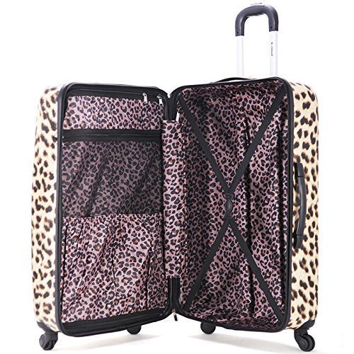 Details: This 3 piece set is made of polycarbonate,abs. Polycarbonate is the same material used to manufacturer bullet proof glass. The major benefits of this material - it is extremely lightweight, it is durable, and protects the contents of your luggage. Multi directional spinner wheels rotate 360 degrees for easy maneuverability. This luggage allows you to pack more while avoiding the excess weight surcharges imposed by most airlines. Features multi-directional spinner wheels for easy maneuverability, modern internal chrome telescoping handle with push button handle, interior mesh and zip pocket and elastic pocket. Measures 20 inches long x 13 wide x 9 inches deep and weighs 6 pounds. 24 inches long x 15 inches wide x 10 inches deep and weighs 8 pounds. 28 inches long x 17 wide x 12 inches deep and weighs 10 pounds.