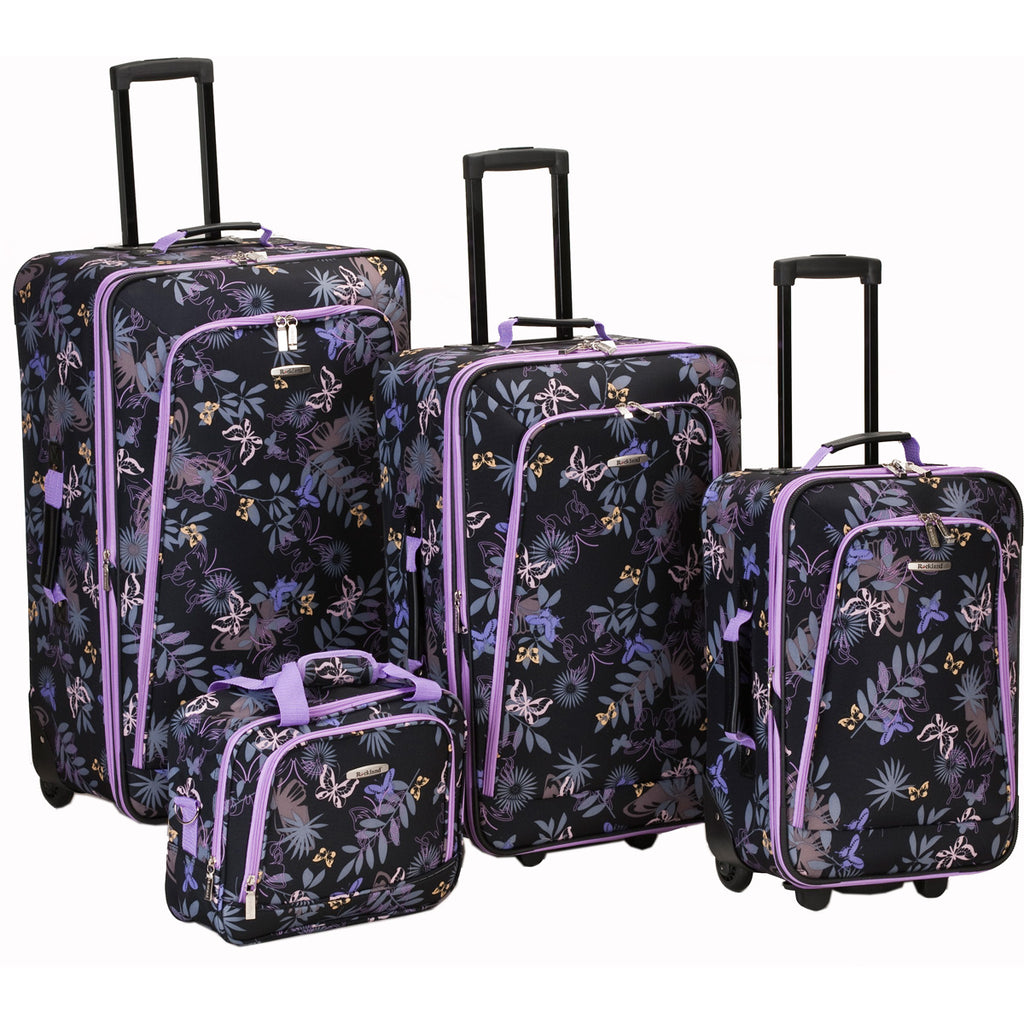 This beautiful deluxe 4-Piece expandable luggage setis manufactured with a patented heavy duty EVA-molded hi-count fabric. This set is perfect for the serious amp; experienced traveler. Manufactured with the very best heavy duty polyester and PVC backing, this luggage set is designed for the traveler on the go and comes with three expandable uprights and a flight tote bag. It comes packed with features including an inside retractable handle, EZ-Roll in-line skate wheels, back zippered secured pockets, top and side comfort grip handle, stability bars at the bottom to avoid tilting, and locks amp; keys.