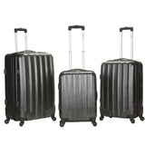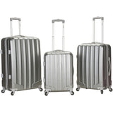 This 3 piece set is made of Polycarbonate/ABS. Polycarbonate is the same material used to manufacturer bulletproof glass. The major benefits of this material are it is extremely lightweight, durable, and protects the contents of your luggage. Eight multi-directional spinner wheels rotate 360 degrees for easy maneuverability. This luggage also allows you to pack more while avoiding the excess weight surcharges imposed by most airlines.