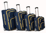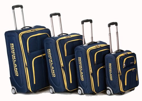 Details: Travel in style with this 4 pc, luggage set, eva molded body with 1200 denier polyester fabric for durability, bags are lightweight, fully lined and have heavy duty in line jumbo wheels, feature retractable push button aluminum handles, two secured zippered front pockets, set includes a 30 inch upright measures 30 inch x 20 inchw x 12 inch, 26 inch upright measures 26 inch x 18 inchw x 11 inch, 22 inch upright measures 22 inch x 16 inchw x 10 inch, and 18 inch upright measures 18 inch x 14 inchw x 9 inch