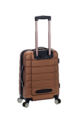 Details: This carryon is made of abs. The major benefits of this material - it is extremely lightweight, it is durable, and protects the contents of your luggage. Four multi directional spinner wheels rotate 360 degrees for easy maneuverability. This luggage allows you to pack more while avoiding the excess weight surcharges imposed by most airlines. Multi-directional spinner wheels for easy maneuverability. Modern internal chrome telescoping handle with push button handle. Interior mesh and zip pocket and elastic pocket. Measures 20 inchx13 inchx9 inch and weighs 7.5 lbs. Wheel design may vary between black and silver wheels