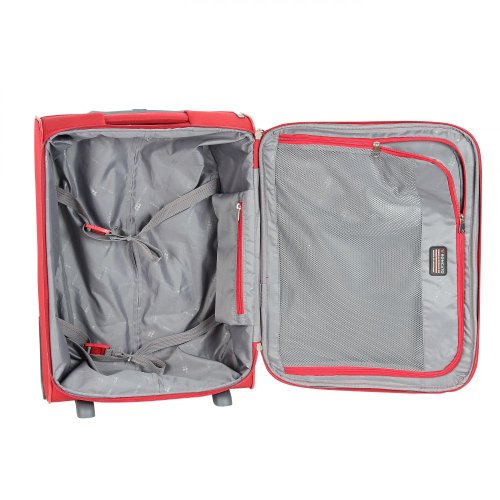 - The interior is fully lined with pockets, dividers and elastic straps to hold clothes firmly; built-in handles top and bottom