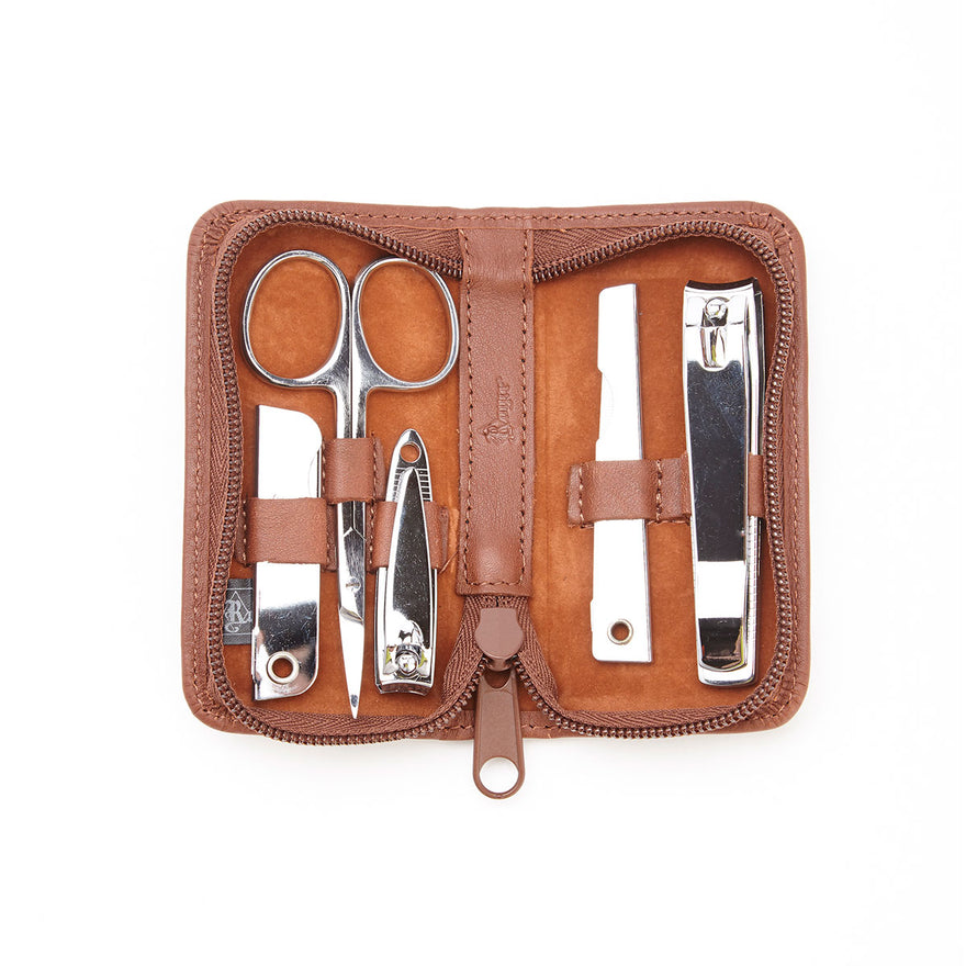 The Deluxe Mini Manicure set the perfect size for travel or on the go! All your manicure needs in a Full grain leather travel case.