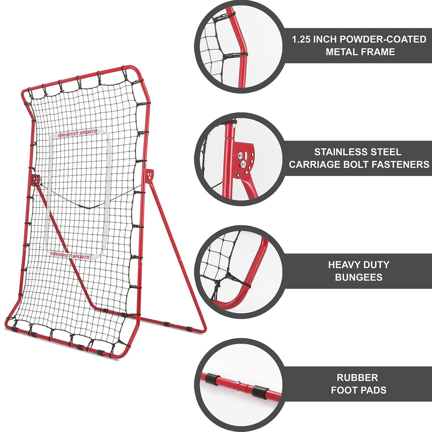 Details: Rukket Baseball / Softball Rebounder PRO is the perfect practice partner for your pitching and throwing training sessions.Take the rebounder out to the mound and put it to work for you - whether you are pitching at your backyard, school, or local park. Get an efficient workout SOLO - and get more reps for yourself to perfect your pitch.Order now and experience the impact Rukket Baseball / Softball Rebounder PRO has on your practices. You will FEEL your pitch level up.PERFECT YOUR PITCH SOLOThe rebounder is designed to be the perfect pitching practice partner for baseball and softball. No need for a coach or another person to aid you - take the rebounder out anytime for convenient, efficient practice to perfect your pitch.CONVENIENT AND EASY TO SET UPAll parts and tools included in package. Compact, portable, and easy to carry anywhere. Foldable design makes set up and storage quick, simple, and convenient.MORE CHALLENGING THAN THE ORIGINAL RUKKET REBOUNDER Designed as a direct upgrade to the Original Rukket Rebounder, with angled top and bottom edges to enforce a perfect pitch at the center target. Ensures more focus when you throw. Unforgiving angled edges will make errant balls fly when not pitched perfectly in the center. MORE REPS TO PITCH, PITCH AWAYRobust stainless steel frame and 1" mesh durable netting. Built-in pitchback automatic ball return feature, making it easy to retrieve your balls after throwing. Feel free to pitch, pitch away.SIMULATES GAME-LIKE FLY / GROUND BALLS:Comes with built-in paracord handle adjustment, making it easy to adjust the angle of the frame. Switch between preset angle adjustments optimally designed to simulate game-like situations such as pop-flies and grounders. **Click the "ADD TO CART" button and order now! This product is backed by RUKKET'S 100% LIFETIME WARRANTY AND SATISFACTION GUARANTEE for no risk-purchasing.** Product Patent Pending