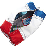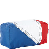 Details: Who says a toiletry bag has to be boring here's one that matches the colorful style of our tri-sail Duffel and tote, and it's made of the same durable, lightweight sailcloth. A beautiful way to stow your sundries! introducing our tri-sail toiletries kit! pre-order now for early April delivery. waterproof lining material keeps leaks and moisture in the bag and away from the clothes in your luggage. Two internal compartments to keep things organized. Full length zipper makes it easy to find what you need in the bag. Finest materials and trim: our genuine sailcloth exterior, YKK marine grade zippers, corrosion-resistant metal hardware, super-tough webbing and signature sailmaker's zig-zag stitching are some of the things that make it easy for us to proudly guarantee sailorbags for life! dimensions: 5"H x 11"long x 5"W