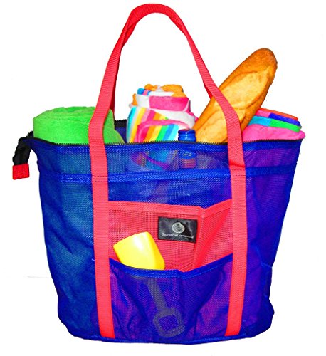 - Saltwater Canvas Bolongo Bay Bag - a mesh beach bag, pool bag and gym bag guaranteed for 3 years against mold, ripping handles, and fading. Blue and Red Beach Bag