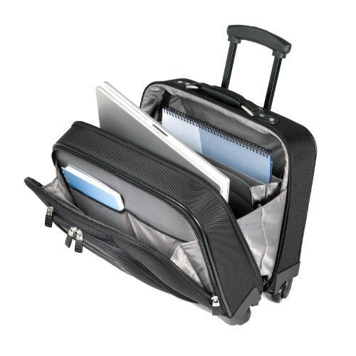 Details: Constructed of durable 1680 denier ballistic fabric with EVA foam backingProtective laptop partments fits 15.6" laptops4 wheels allow user to push or pull in any direction5-stage adjustable handleBlack17" W x 14" H x 7 1/2" D