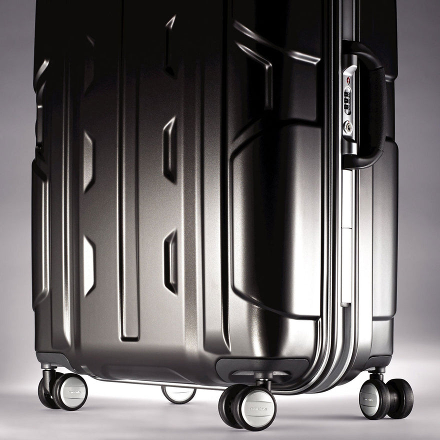 A bold fusion of stylish construction and durability. Aluminum framed, 100% polycarbonate construction creates a combination of strength, flexibility and capacity. The lighweight performance is further enhanced with the near effortless mobility of sleek, smooth-rolling dual spinner wheels.