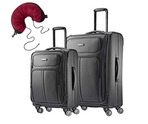 - This Samsonite Leverage LTE set includes a 20" and 25" spinner, and a travel pillow. Four multi-directional double Spinner Wheels for easy mobility. Rolls upright so there is no weight on your arm or shoulder.