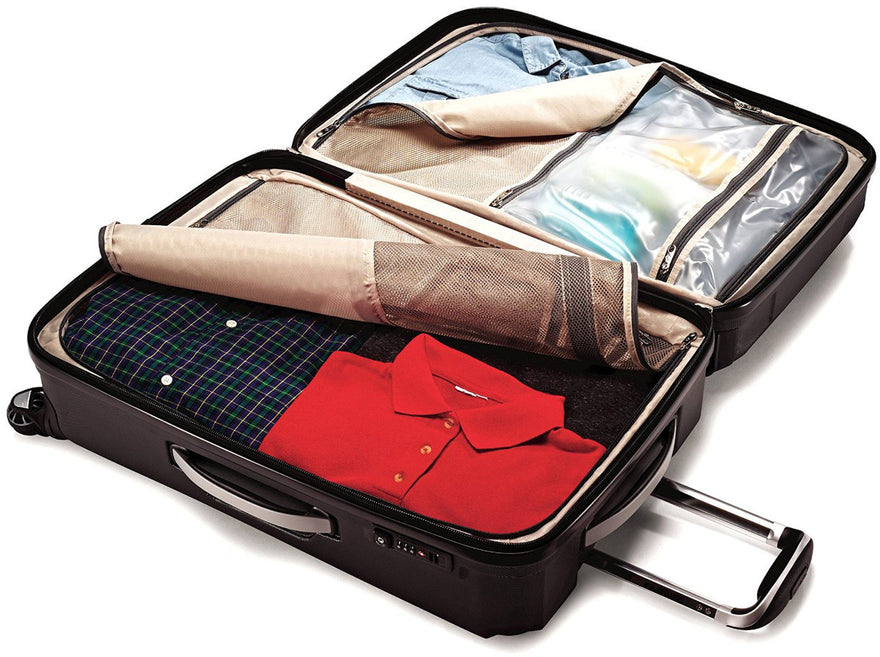 • Flush-mounted Travel Sentryreg; combination lock provides additional peace of mind when checking belongings.