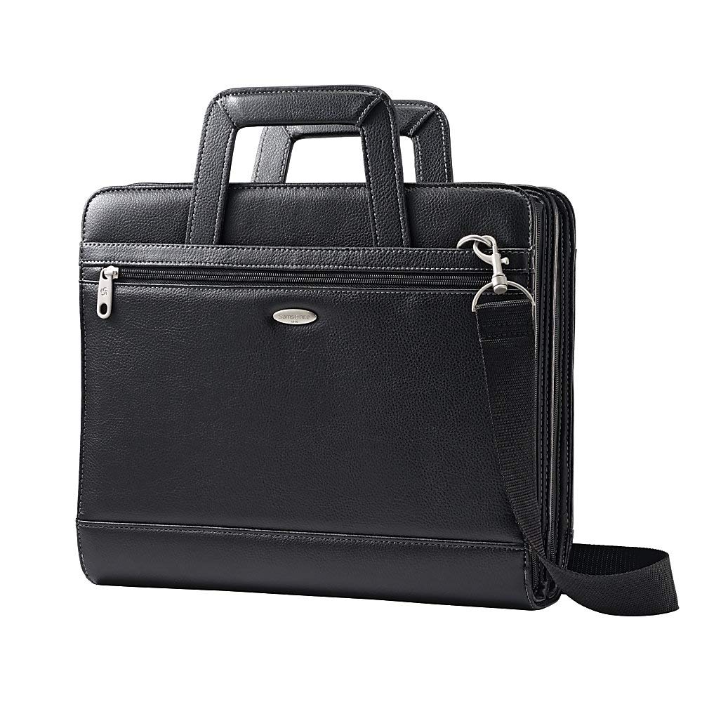 Details: Stylish, leather-like, vinyl exterior for great durability Interior includes a letter-sized notepad and 1 1/2" D-ring binder. Interior also features a vertical file pocket, calculator, zipper pocket, 2 open pockets, card pockets, an ID window and pen/pencil holders. Rear gusset contains a 2-file divider. Allows for easy access to the front zipper pocket and rear open pocket . Zip-around closure keeps contents secure. Features a convenient top handle.
