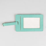 - Luggage tag measures approx 11.5 x 7cm (excluding strap), and is made out of plastic with a soft leatherette feel.