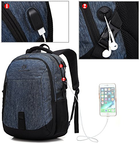 - Large main compartment. External zipper closure pocket. External strap closure pocket. Key ring. USB charging and headphone holes.