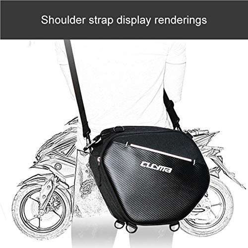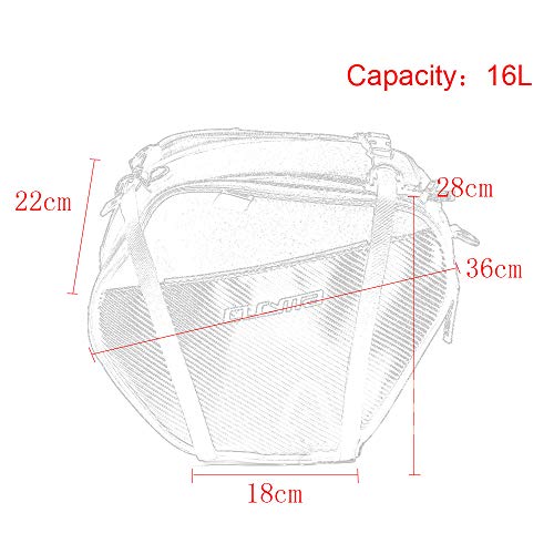 Details: Brand Name:CUCYMA Special Features:Waterproof Item Type:Tank Bags Model Name:CB-1805 Material Type:600D Polyester Construction Item Weight:0.9kg Colour: Black Fabric material: carbon fiber grain PVC + high density polyester 600D Size: 36cm*22cm*29cm Capacity 25L Lining material: high density polyester 210D Products include: waterproof cover *1, strap *1, fixed webbing *2, PE board *1