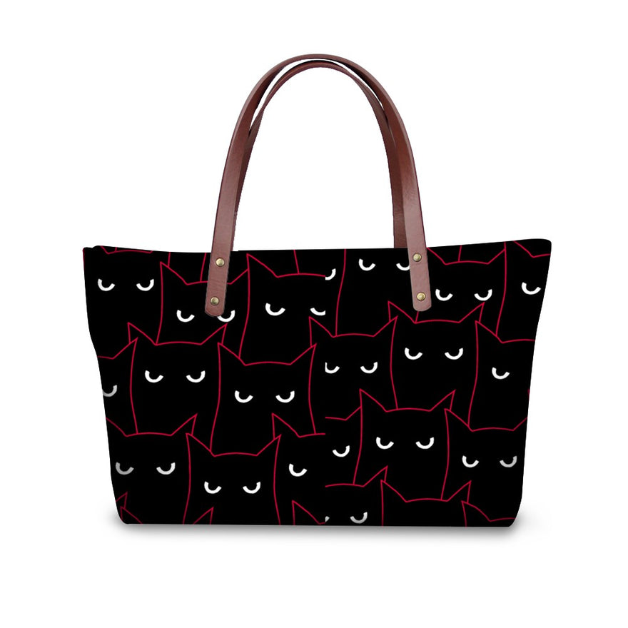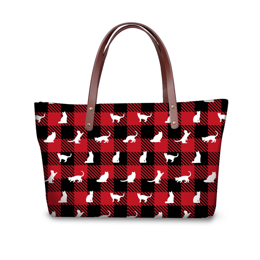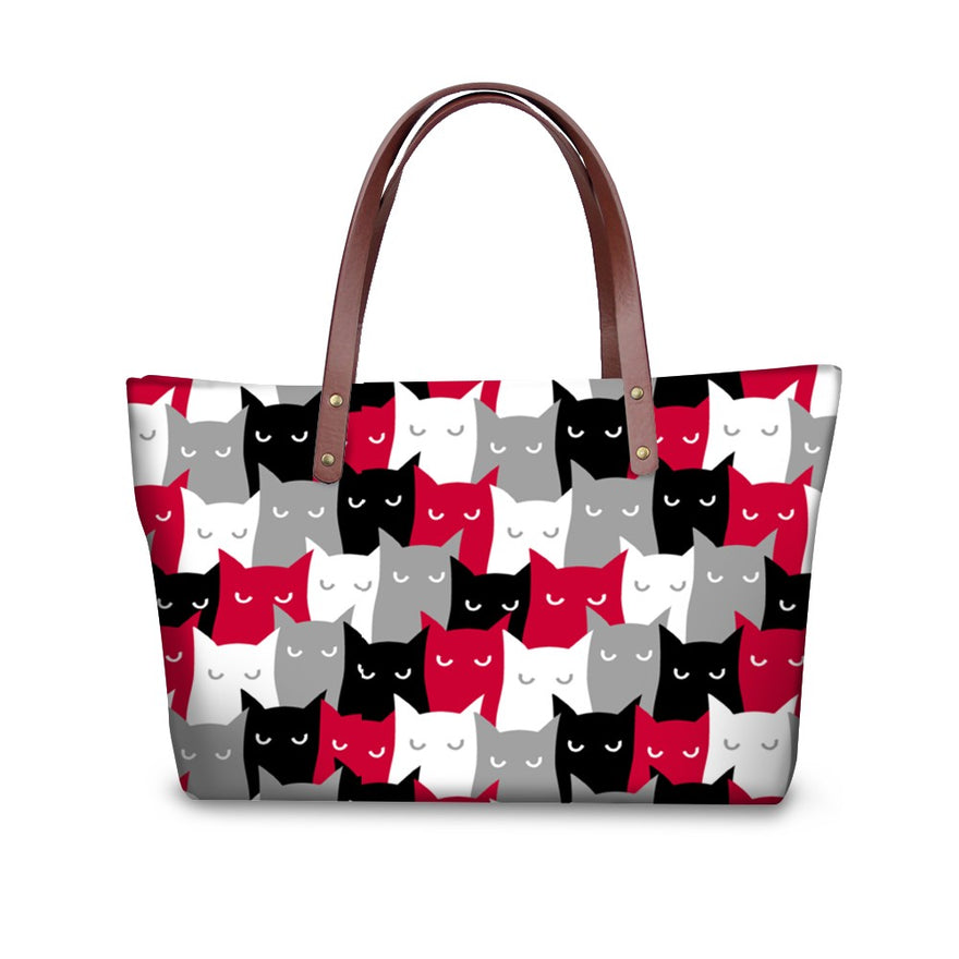 Travel Shoulder Bag For Women Shopper Handbags Cat-Halftone Pattern Crossbody Totes