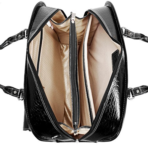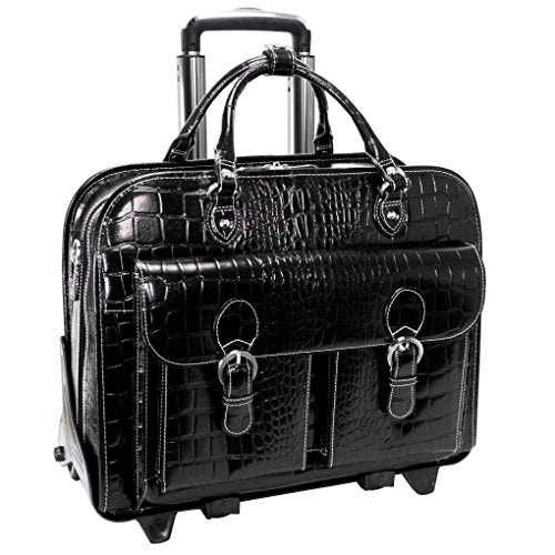 Details: SAN MARTINO - Italian Leather Ladies Wheeled-Detachable Laptop Case - Color Black