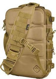 Details: This unique pro-quality sling-pack has generous size to accommodate laptops in its padded retainer, yet is nimble enough to be rotated from back to chest. Common to all our slings, such as the Evac™ series, this maneuver gives on-the-go access to frequently used gear while carrying heavier loads on the back the rest of the time. It's also more secure in crowds etc., since you can keep it in sight and allows users to sit back in tight quarters such as ski lifts, or in vehicle interiors etc. The generously padded and ventilated main shoulder strap is also ergonomically cut for hours of comfortable wear per day, and it is covered in modular (MOLLE compatible) webbing to attach pouches for phones etc at hand's reach. Generous side modular webbing provides lots of expansion options and the thermoformed best-in-class moulded back panel provides variable rigidity, air ventilation, and a durable surface. A drop-down fast access gear organizer can also hold an ipad sized tablet like a shelf and the main compartment is lined in velcro like fuzz for attaching dividers, patches or Hazard 4 holsters. An included but removable stabilizer strap keeps the bag from sliding forward when leaning (like on a bike,) and a removable delta-retainer is included for keeping bottles and similar objects inside the side pockets of the Switchback. Wherever and however hard core your work or play, the Switchback's got your back, and your front.