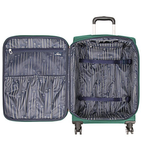 - 21-Inch Expandable Spinner Carry-On is 21" x 15" x10" and weighs 6.4 lbs. Gain increased packing capacity with the simple pull of a zipper: perfect for packing souvenirs.