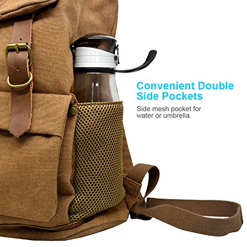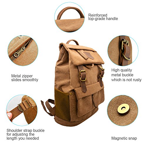 - ★ DURABLE MATERIALS -- This backpack is made of high-quality cotton canvas, matching with retro leather accessories, making the bag looks more elegant and fashionable ,Vintage canvas backpack with adjustable shoulder straps for carrying comfortably.