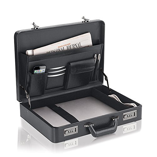 Details: Solo Premium Leather Attache features a premium leather body and a padded frame laptop compartment with removable padded spacers and Velcro straps that protect laptops up to 16”. Interior organizer section and file pocket make it easy to stay on top of your workload. Dual combination locks ensure extra security. Comes with 5 year warranty.