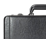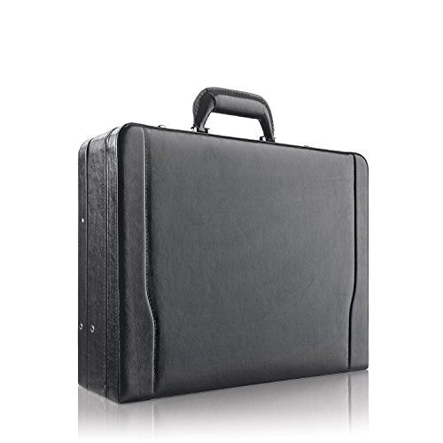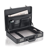 Details: Solo Premium leather 16” Laptop Attache hard-sided briefcase with combination locks provides the carrier with functionality and simplicity. Inside there is a padded frame laptop compartment that has removable padded spacers and velcro straps that protect laptops up to 16”, interior organizer section and file pocket, dual combination locks, and a sturdy carry handle. Comes with a 5 year warranty.