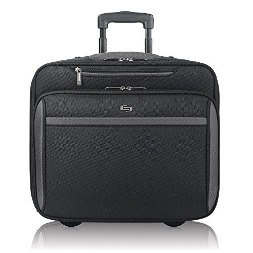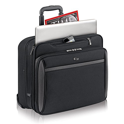 Details: Solo 16” Rolling Laptop Case with overnight section features CheckFast sleeve design that allows you to pass through the airport security more quickly. Removable padded sleeve protects laptops up to 16” and interior compartments feature quick access pocket, front zip-down organizer section and fan file pocket that make it easy to stay organized. Comes with 5 year warranty.