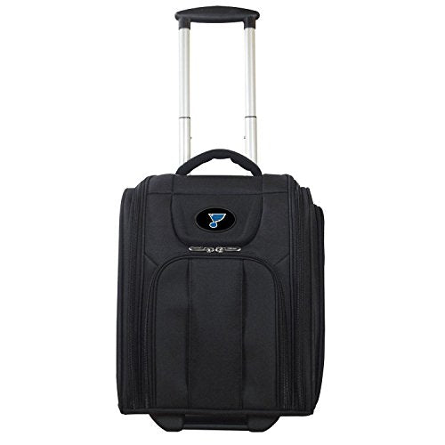 Details: The NHL Business Tote Laptop Bag in Black has everything you need for a quick overnight trip. It features a lightweight nylon case with a roomy main compartment for clothing and a separate computer sleeve. There is also a zippered exterior side pocket for electrical and miscellaneous accessories plus a roomy front zippered pocket for pens, pencils and other small business accessories. Also contains a key clasp. It's high end true ball bearing skateboard wheels provide excellent mobility. Has a padded grab handle for easy lifting and a back strap that enables the overnighter to have add-a-bag functionality. This bag is even configured to fit under most airline seats.