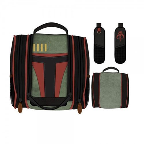 Details: Star Wars Boba Fett Dopp Travel Kit Approx 8" x 10" zippered 100% Man Made Materials Lots of pouches and zip pockets for your travel items. Unzips so you can hook onto shower door etc for easy access.