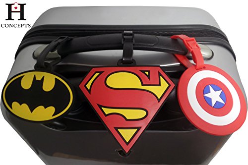 Details: A super hero theme luggage tag/ID tag set The super heroes in this luggage tag/ID tag sets are 3 of our all time favorite heroes Superman, Batman and Captain America.