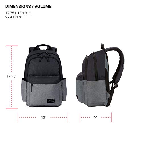 Details: Made from rugged polyester, the SWISSGEAR 2789 provides a large capacity main compartment designed to fit your 13” laptop, textbooks and binders. A front organizer compartment provides designated pockets for your tablet, smartphone, pens, pencils, and ID, while a front zip pocket has plenty of space for smaller, more frequently needed items. Stay hydrated with your water bottle stashed in the side pockets. Ergonomically contoured shoulder straps and mesh Airflow back panels for all day comfort.