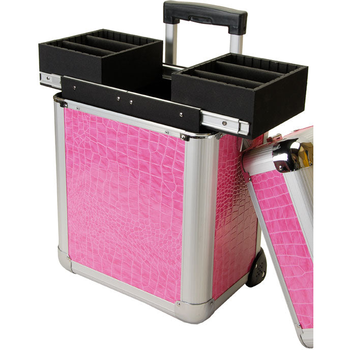 The TZ Case Miniature Professional Rolling Beauty Case is for those who take make-up seriously. Features include 2 slide trays with pull handles and wheels, a removable mirror in the Lidand a convenient rear-mounted accessory pocket.