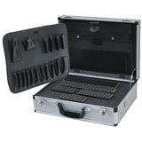 The TZ Case Double Duty Pistol Case is constructed with a powder coated aluminum frame and diamond plate black finish to provide maximum strength. The interior is lined with EVA foam and finished with interlocking high density foam that holds your firearms into position.