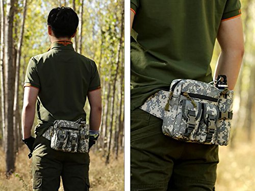Details: Department: Unisex Structure 1.Exterior: One zipped front pocket,Two Card Buckle Closure Package Cover front pockets,One Water Bottle Bag 2.Interior: One zipped pocket 3.Outer Material: High strength abrasion nylon Inner Material: Waterproof Silky Cotton 4.Hardware: Metal+Lengthen the Rope Pull Head 5.Adjustable long Waist: Military Nylon Fabrics Unremovable Waist Measurements 1.Dimensions: 5.5"+2.8"W x 7.1"H x 2"D Water Bottle Bag: 2.8"d x 7.1"H 2.Waist Strap Drop (From waist to the strap): 21.1"-35" Waist Strap Width: 2" 3.Pocket size: (Zipped front pocket): 11.2"H x 11.4"W 4.Weight: 0.7lb Features 1.Suitable for fitness, outdoor travel, hiking and other outdoor activities. 2.MOLLE external expansion system designed to be used in combination with other equipment,you can load pockets,water bottle bag,accessory kits and other. 3.The Wasit bag works well with a variety of different outfits and casual styles. Notes 1.Care:Hand wash with cold water. 2.Tolerance:0.39"-0.79". 3.Packing List:Tactical bag x 1.