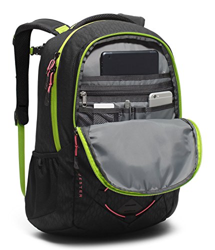 Details: The classic women's Jester backpack from the North Face is back in its new redesigned look for 2015. Features two large compartments. The main compartments includes a floating padded laptop sleeve that fits most 15" laptops. The front compartment features an internal organization panel for smaller items.