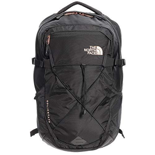 Details: The North Face - Women's Solid State Laptop Backpack - Black/Rose Gold The women-specific FlexVent suspension system boasts compression-molded shoulder straps and a padded mesh back panel with a spine channel that's specifically shaped for an ergonomic fit Women-specific shoulder straps with flexible attachment points are contoured for a womens torso for a perfect fit for any size or shape Floating padded laptop sleeve in main compartment protects laptop from bumps and falls Secondary compartment has internal organization with a secure zippered pocket, Velcro pocket and pen pockets Reflective bike-light loop, reflective water bottle tabs and reflective shoulder strap webbing create 360 degrees of reflectivity