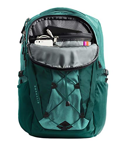 Details: The North Face® Borealis features a sleek design and plenty of room for all your gear. Women-specific fit. FlexVent™ injection-molded shoulder straps with additional PE foam for added comfort. Comfortable, padded Chemise back panel with Spine Channel and PE sheet for extra back support. Padded, winged, stowable hipbelt. Large main compartment with padded laptop sleeve and hydration clip/port- fits most 15" laptops. Secondary compartment with organization panel. Front stash pocket with zip closure. Bungee storage system on the front. Mesh side water bottle pocket. Reflective light loop. Safety whistle located on the chest buckle. Endorsed by the American Chiropractic Association (ACA). Dimensions: 19" x 13.5" x 7.5" (48 cm x 35 cm x 19 cm). Volume: 1526 cu in / 25 L. Materials:•420D nylon.•600D polyester print.•1680D ballistics nylon.•280D x 300D polyester nylon blend. Measurements: Weight: 2 lbs 9 oz