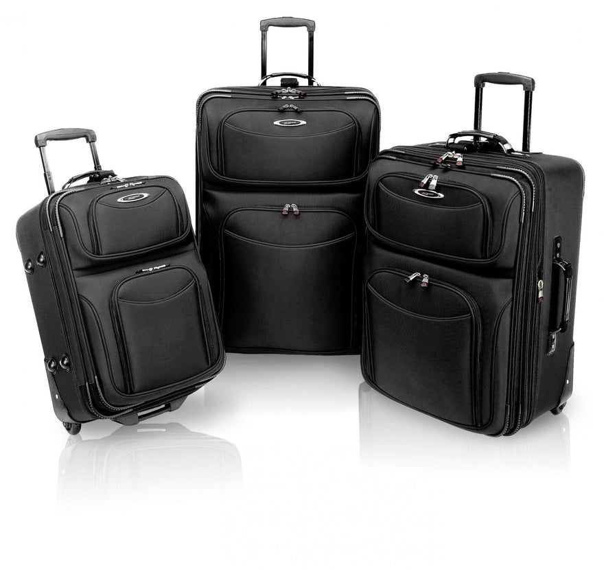 The Traveler's Choice El Dorado 3-Piece Expandable Luggage Set is made of durable ballistic nylon and features 29rdquo;, 25rdquo; and 21rdquo; suitcases with in-line skate wheels for easy rolling over surfaces. The cases have spacious compartments and convenient interior pockets for packing shoes and other small items as well as detachable suiters to keep your hanging garments wrinkle free. The 3 inch expansion will give you additional packing capacity when needed. Both water and tear resistant, the ballistic nylon fabric will provide years of use, and the add a bag straps will allow you to carry another bag easily.