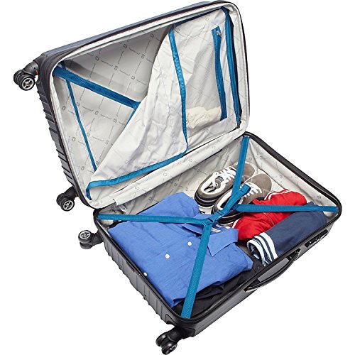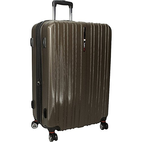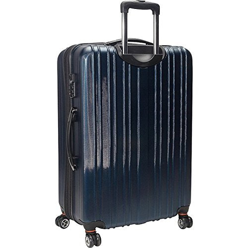 Details: The Tasmania collection is constructed of 100% Pure Polycarbonate Our 100% pure polycarbonate is the strongest material for hardsided luggage and provides excellent impact strength and durability The polycarbonate hard shell material absorbs impact when under stress, making it both durable and flexible Abrasion resistant diamond cut pattern makes it long lasting Aluminum push button handle system extends to 42 inches The self-locking telescopic handle is adjustable to a variety of heights Dual spinner wheels provide smooth and quiet rolling Expansion gusset offers 25% more packing capacity Clamshell opening with fully imprinted interior lining Interior lid with “U" zip mesh cover and tie-tapes to secure belongings Two interior zippered mesh pockets and a center zippered pouch for easy organization Built-in TSA recognized 3-dial combination lock for secure packing Durable top and side carry handle reinforced with internal support plates Convenient add-a-bag strap for carrying additional bags 29"H x 19.5"W x 11"D Expands to 13"D Weight: 10.8 lbs