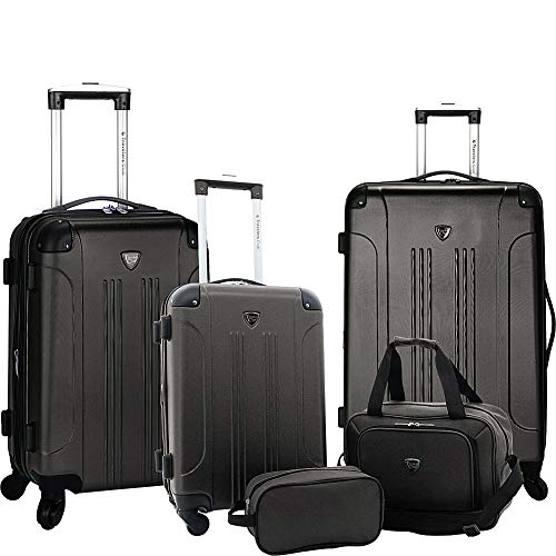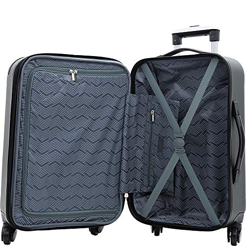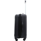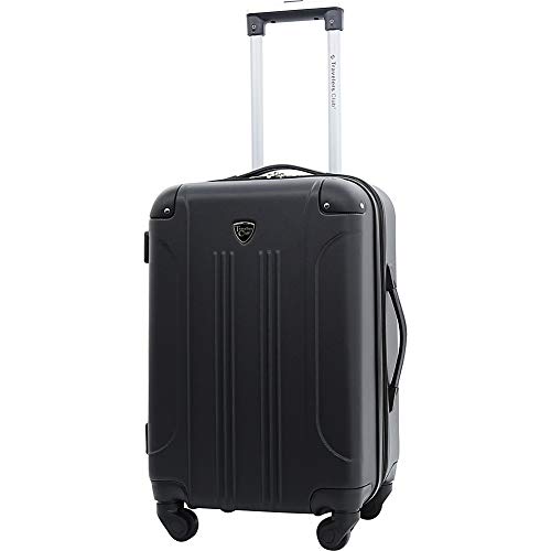 Details: Traveler's Club chic A Go Plus 3Pc hard side expandable spinner luggage set is constructed from durable ABS material with an embossed finish for scratch resistance and features a telescoping trolley handle system, 4 double spinner wheels for multi-directional mobility, and deluxe corner guards to absorb impact. This set includes 20" Carry-on, boarding tote and 10" Travel kit.