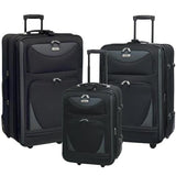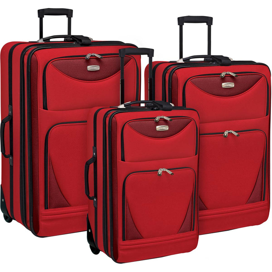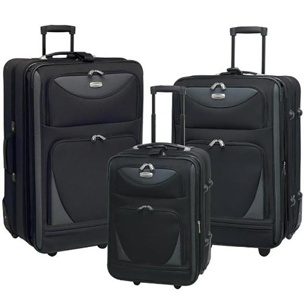 Take everything you need for an extended trip with this Traveler's Club three-piece luggage set. Featuring tough 1,200-denier polyester construction to protect your belongings, these bags expand an additional 2.5 inches, so you have extra room for souvenirs you pick up along the way. This rolling luggage set includes three different size bags with lockable telescoping handles and inset blade wheels for easy maneuverability.