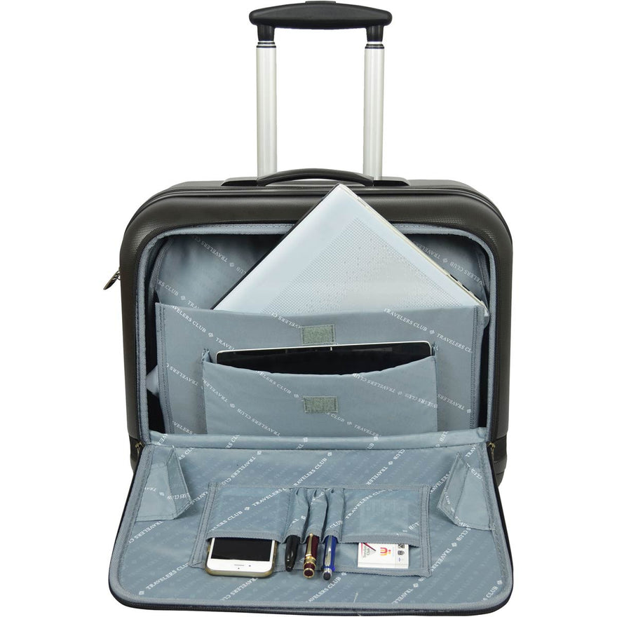 Travel meets style. Style meets functionality. Functionality meets longevity. These are the hallmarks of Travelers Club Luggage. Wherever you go, on a casual weekend excursion or on a challenging business trip, fly with confidence with our Stanford 18" Rolling Laptop Briefcase, featuring a durable amp; lightweight scratch-resistant hardside shell, telescopic handle, and front organizer pocket with tablet compartment.